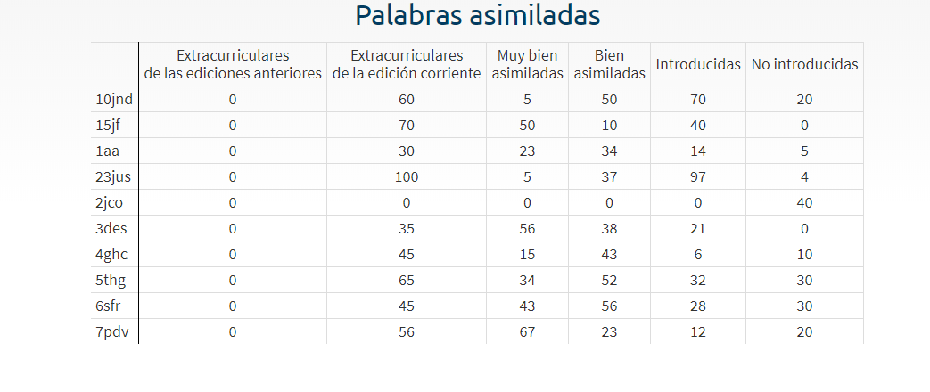 El profesor asigna las palabras para cada clase/grupo individualmente, para las próximas semanas. Con estas palabras los alumnos van a trabajar, usando Insta.Ling. Cuando los alumnos dominan las palabras suficientemente el profesor añade más palabras para aprender.