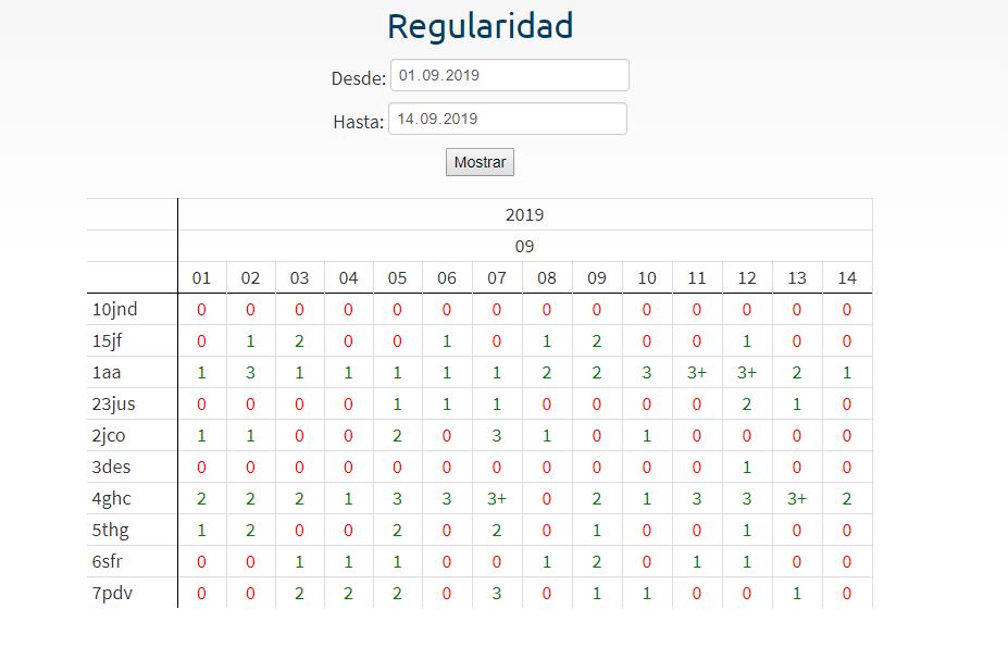 Desde el principio Insta.Ling permite al profesor la evaluación objetiva de la regularidad del trabajo del alumno en casa. El profesor tiene acceso a los informes de regularidad, que muestran los días en las que el alumno trabajaba.